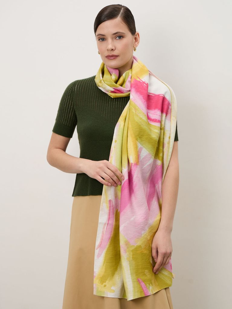 Шарф из вискозы 12024 Geo — это тёплый и живой акцент, который сразу притягивает внимание. Он добавляет образу динамики, мягко драпируется и создаёт выразительный объём за счёт длины и плотности.