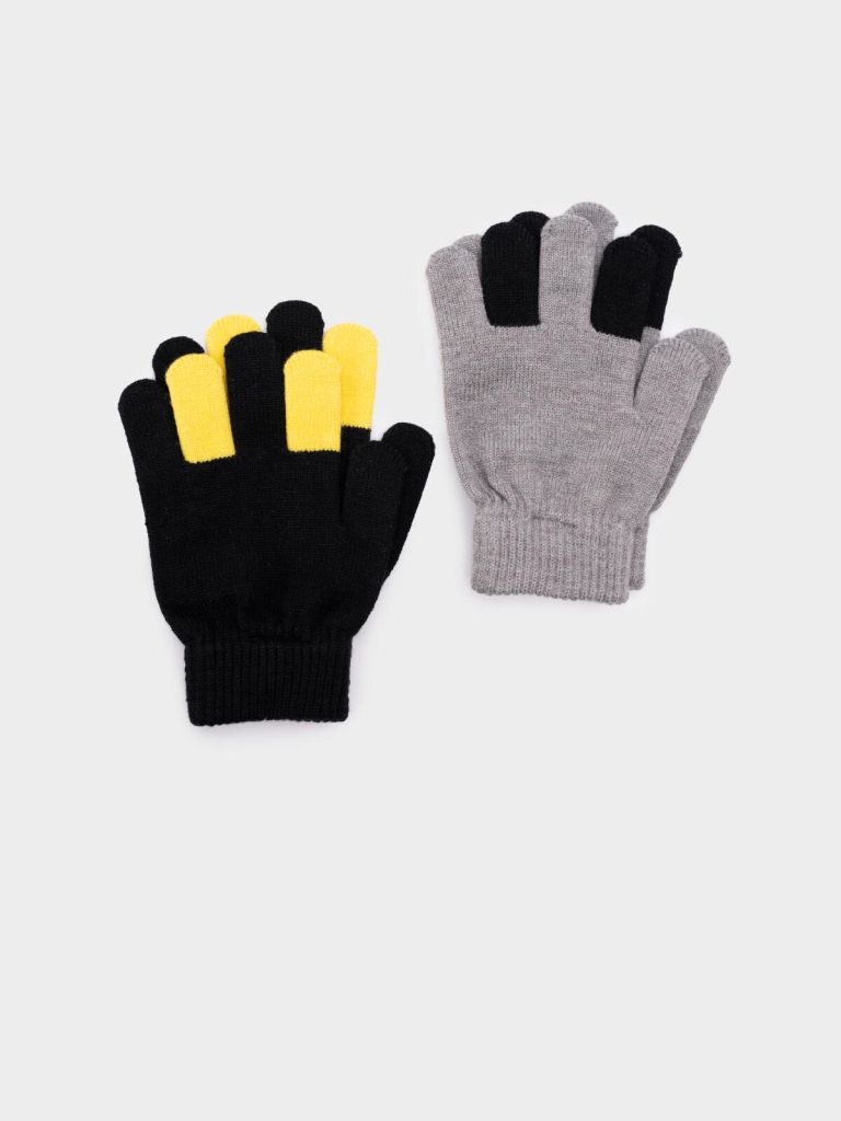 Набор детских перчаток для мальчика. Перчатки из вязаного трикотажа. 2 пары в комплекте. Пряжа с высоким содержанием хлопка: теплая, гипоаллергенная. Вязаная резинкой манжета.