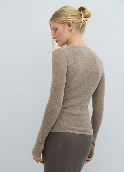 Свитер из мягкой пряжи с шерстью, Коричневый