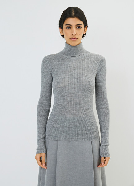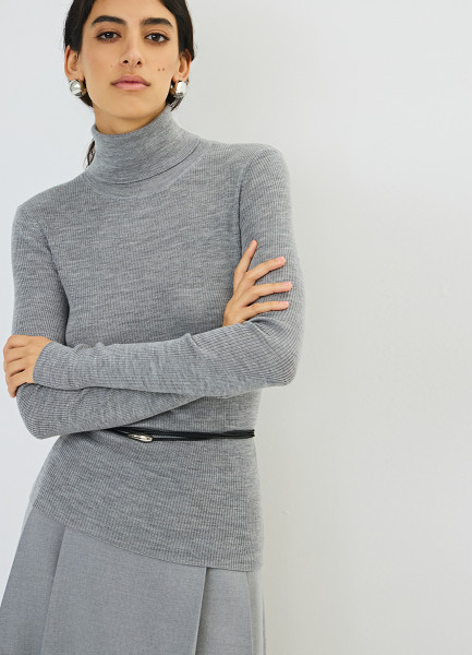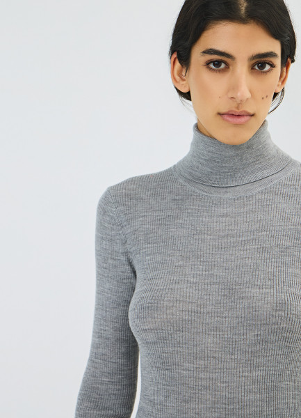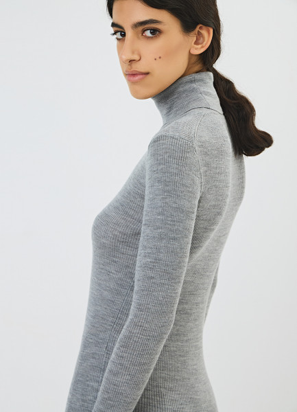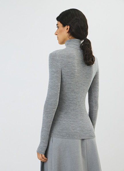 Водолазка из шерсти в рубчик, Серый
