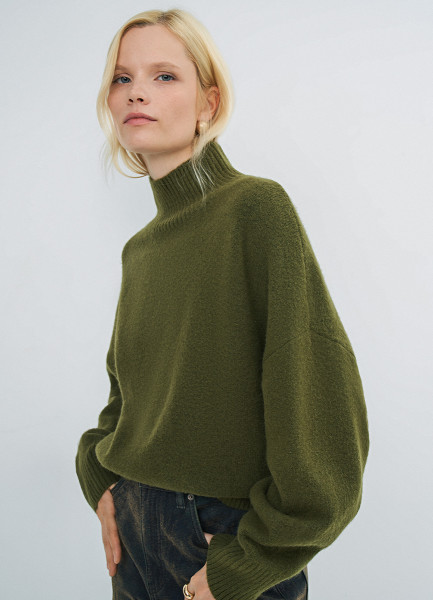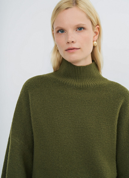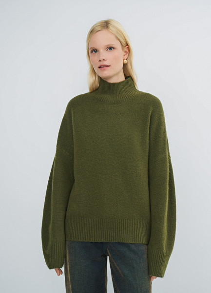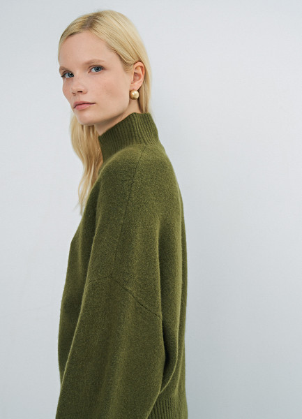 Свитер из мягкой пряжи с шерстью, Зеленый