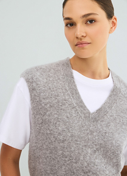 Укороченный вязаный жилет, Серый