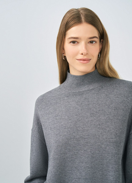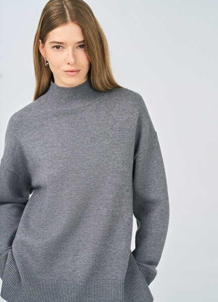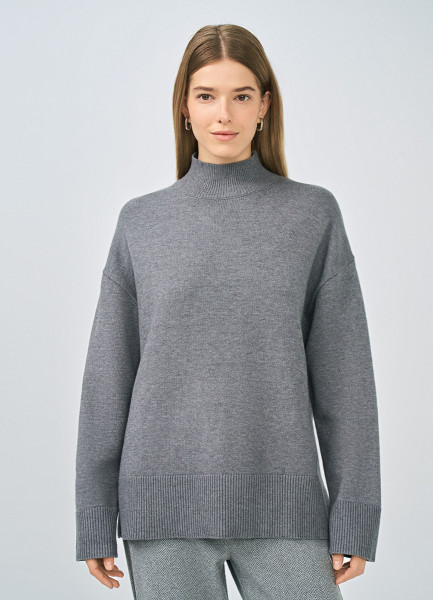 Джемпер с воротником-стойкой, Серый