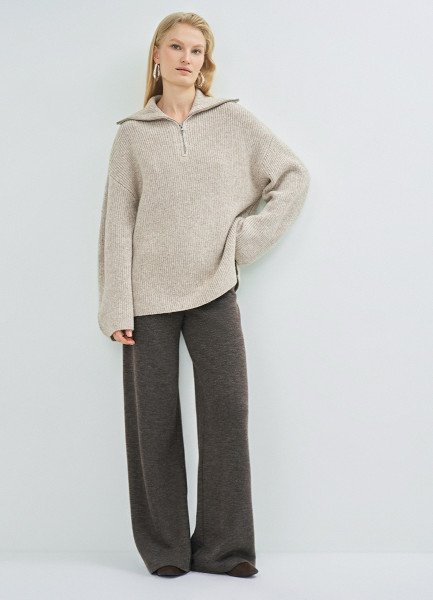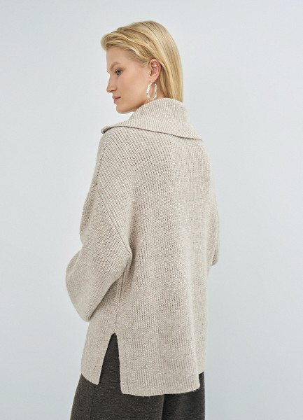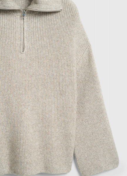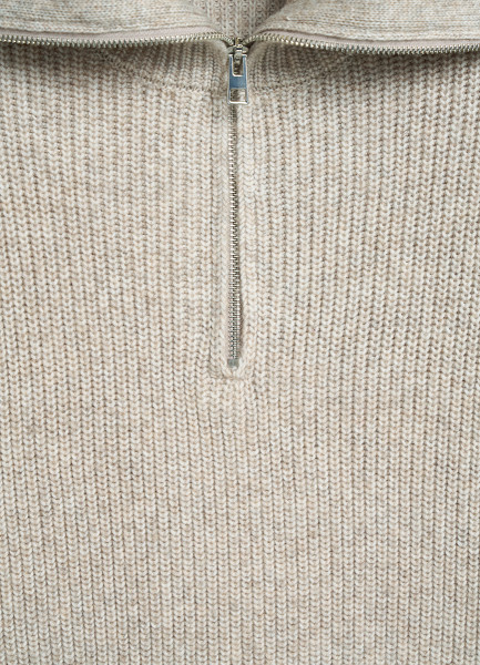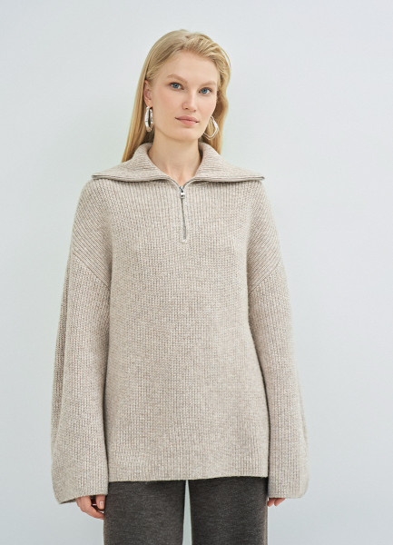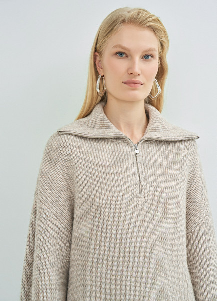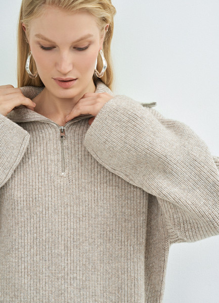 Джемпер с воротником-стойкой на молнии, Бежевый
