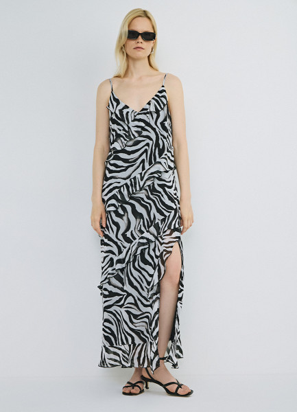 Платье из принтованного шифона с рюшами, Серый