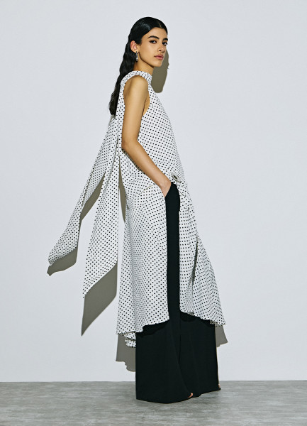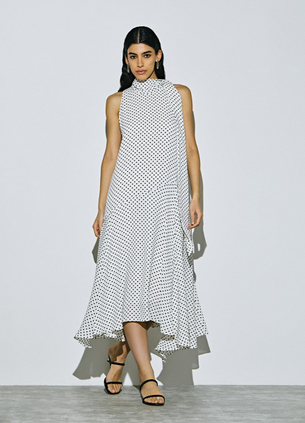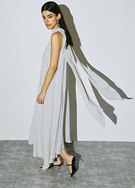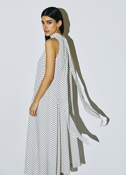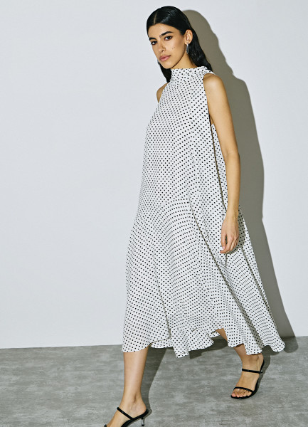 Платье мини из шифона в горошек, Черный