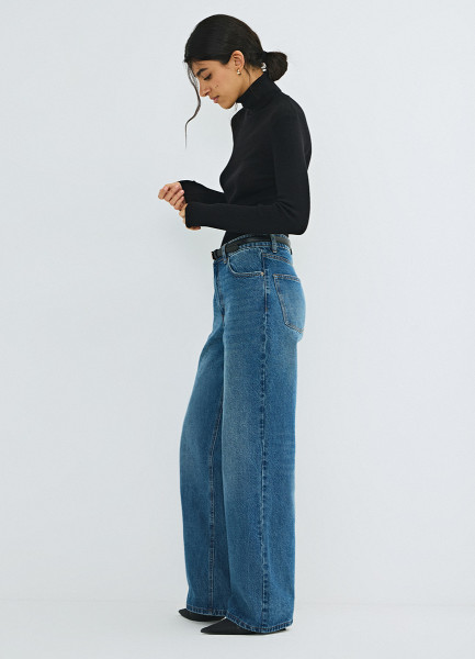 Широкие джинсы с высокой посадкой, Синий
