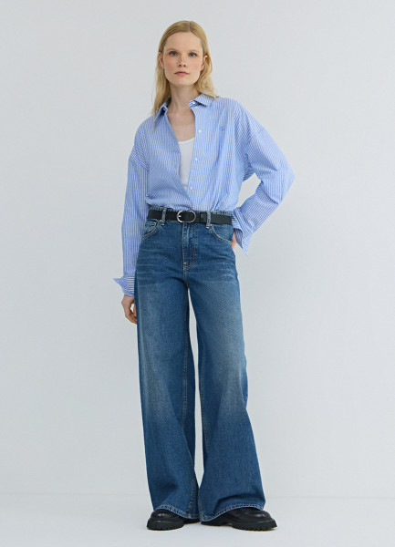 Ультраширокие джинсы с высокой посадкой, Синий