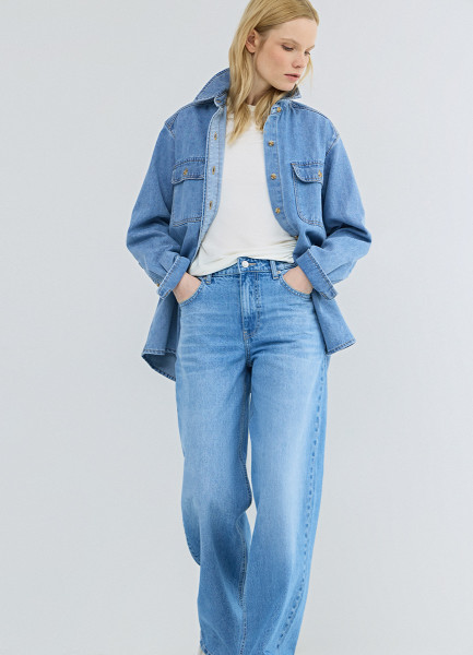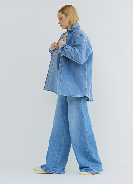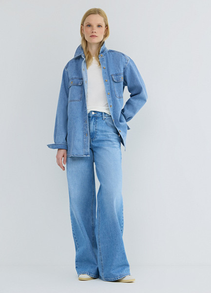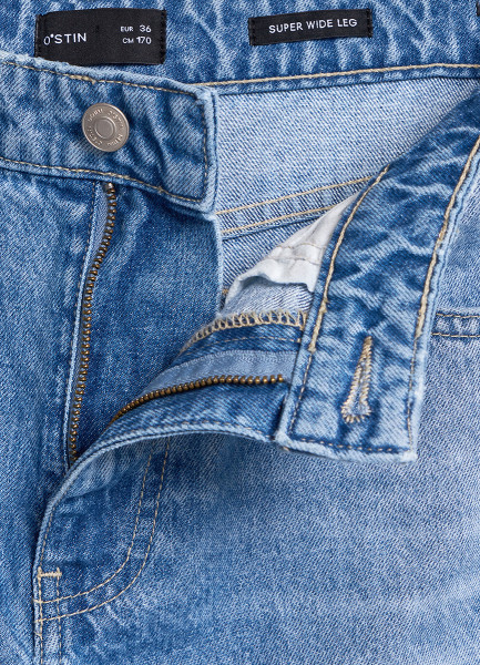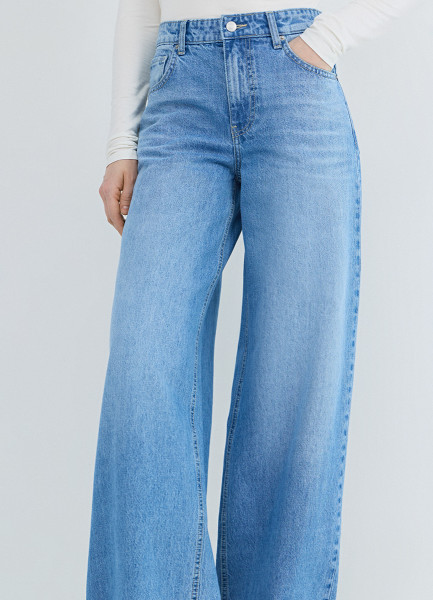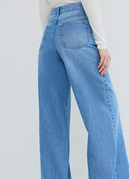 Ультраширокие джинсы с высокой посадкой, Голубой