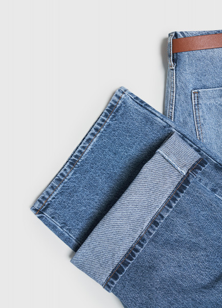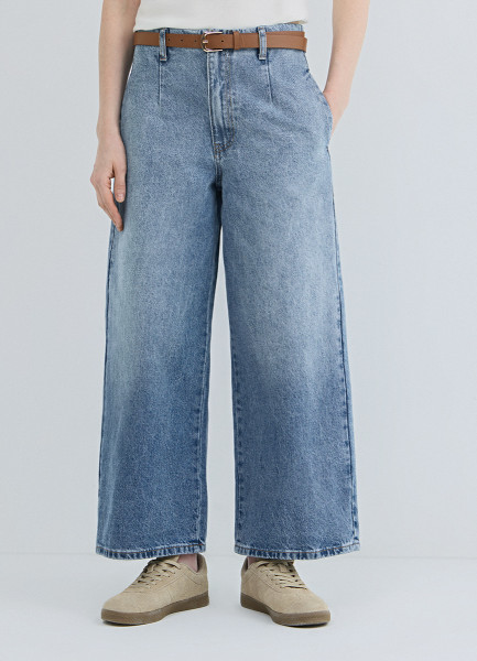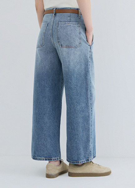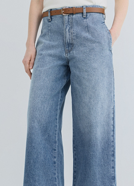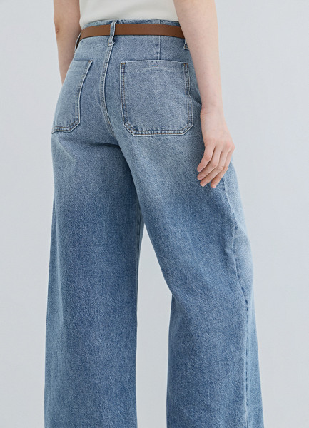 Широкие джинсы с высокой посадкой и ремнем, Синий