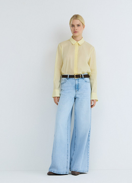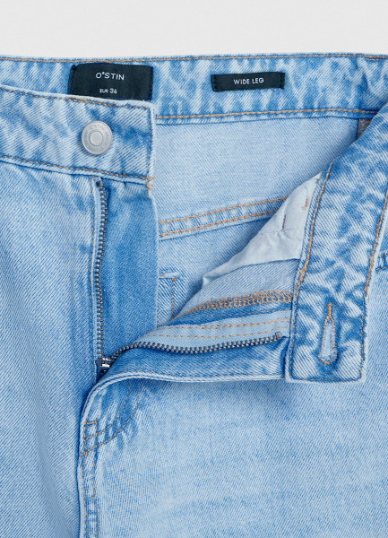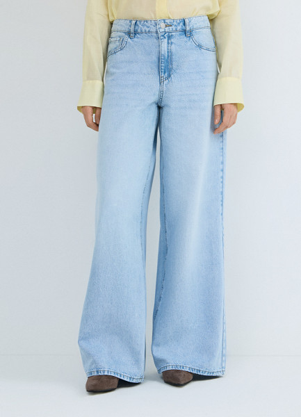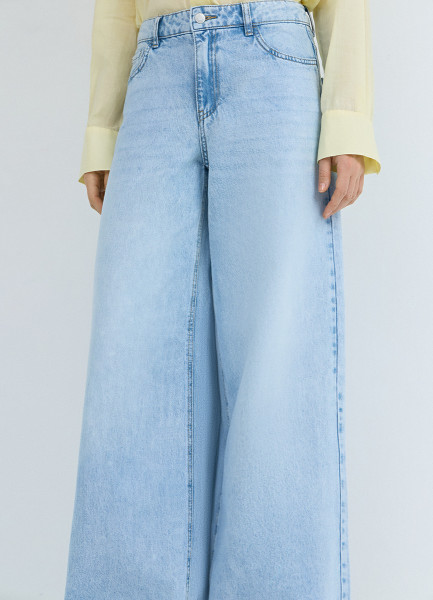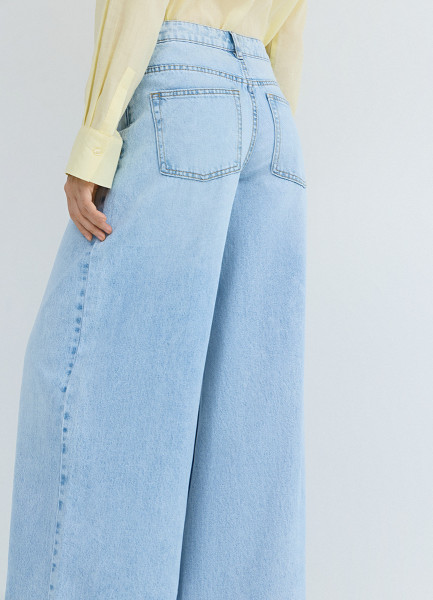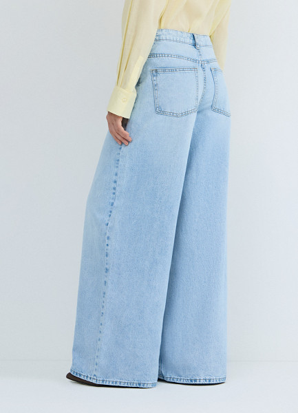 Ультраширокие джинсы со средней посадкой, Голубой