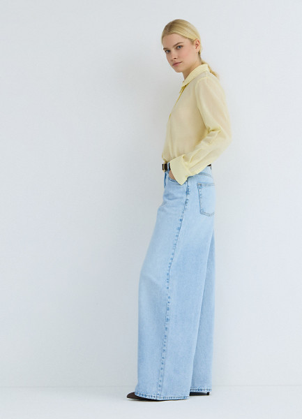 Ультраширокие джинсы с высокой посадкой, Голубой
