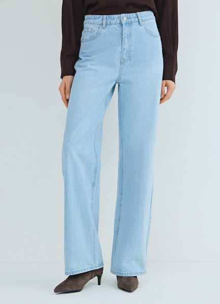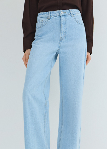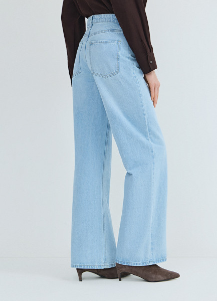 Ультраширокие джинсы с высокой посадкой, Голубой