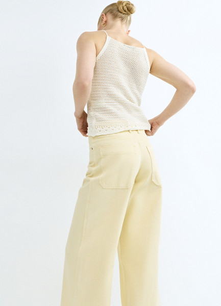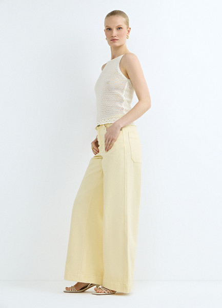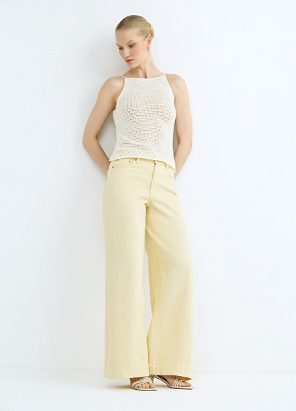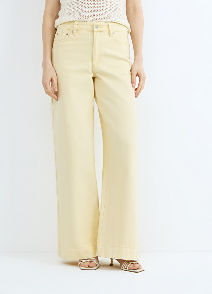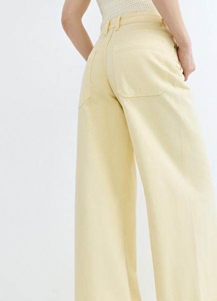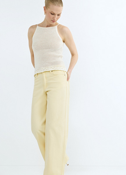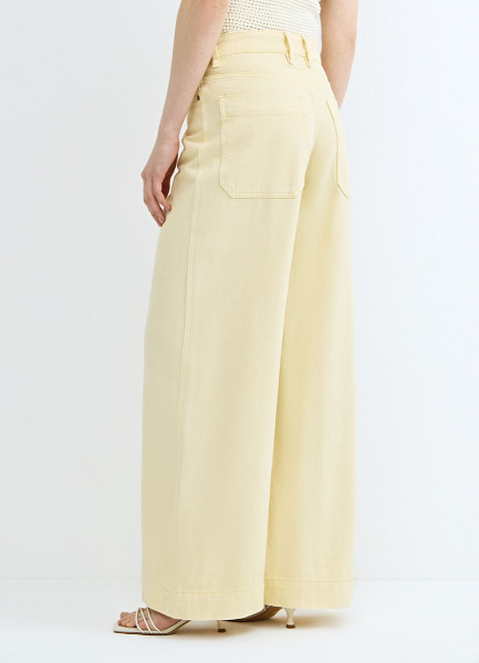 Широкие джинсы на высокой посадке в цветочный жаккард, Голубой