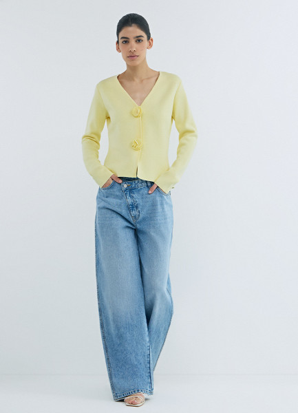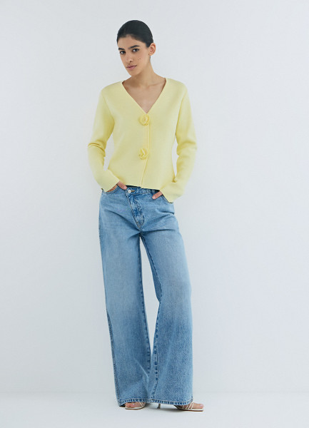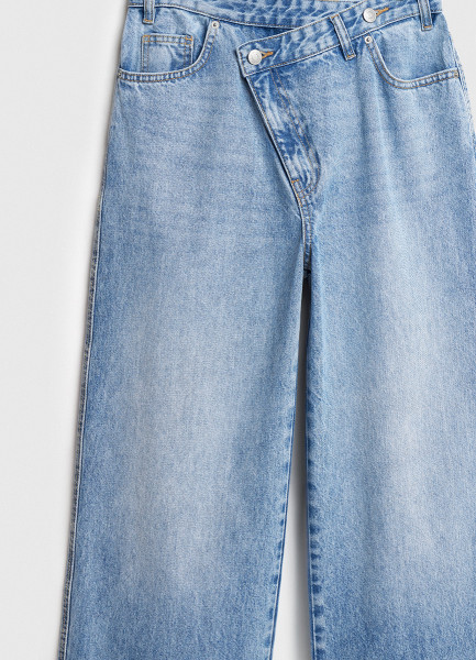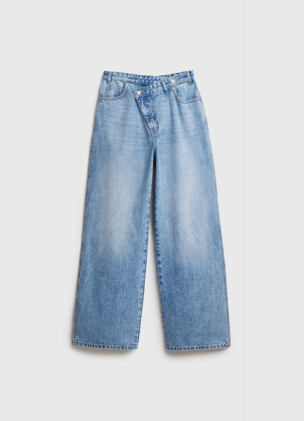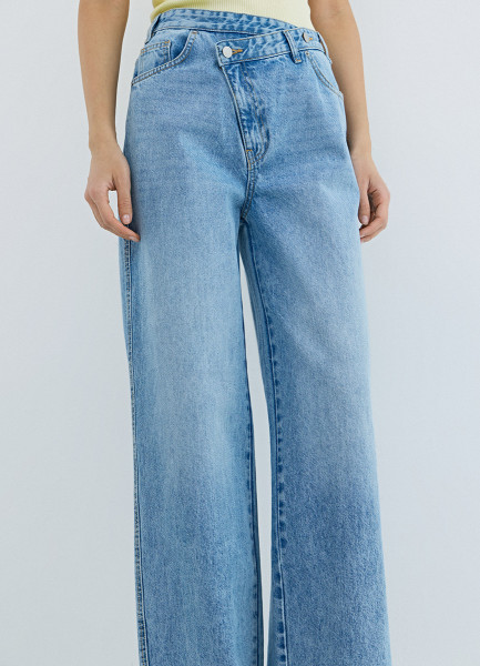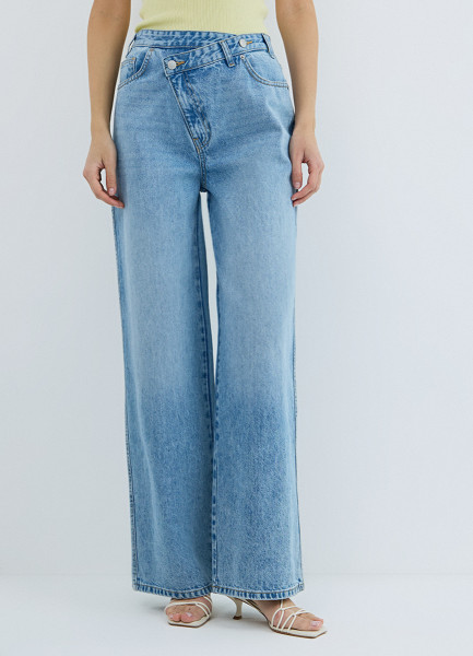 Широкие джинсы с асимметричной застёжкой, Голубой