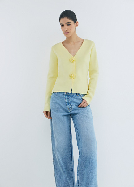 Широкие джинсы на высокой посадке в цветочный жаккард, Голубой