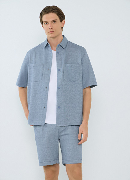 Шорты из двухцветного пике, Голубой