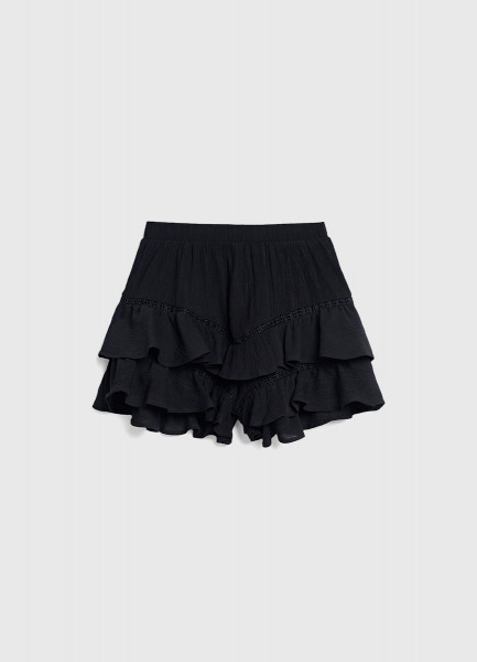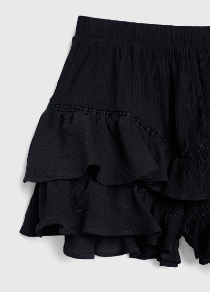 Шорты из ткани с жатым эффектом для девочек, Черный