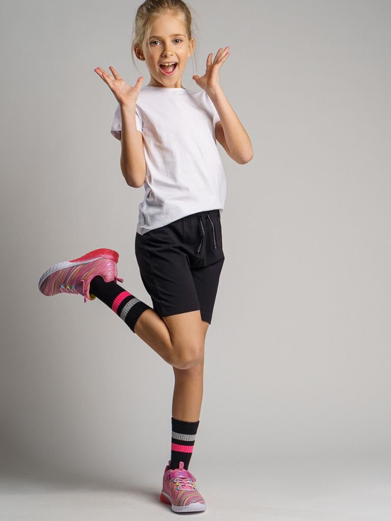 Школьные черные базовые шорты на резинке - необходимый атрибут девочки подростка для занятий физкультурой и спортом, как на улице, так и в зале. С футболками или толстовкой, шорты составят стильный красивый комплект в школу. Мягкое трикотажное полотно с высоким содержанием хлопка создаст приятное прилегание к телу. Разработаны специально для профессиональных занятий гимнастикой, хореографией, танцами.