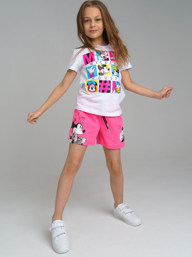 Шорты с персонажем Disney из качественного и приятного на ощупь трикотажа джерси. Высокое содержание хлопка. Благодаря наличию эластана в составе ткани изделие проще в уходе и держит форму. Оптимальная посадка: шорты не сползают при движении. Эластичный пояс со шнурком.