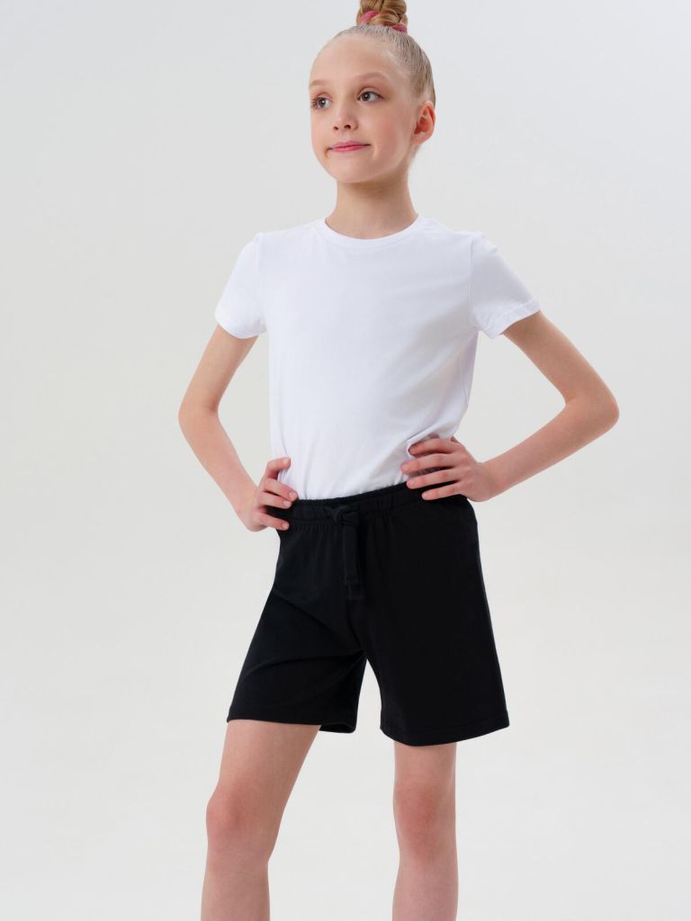 Эти чёрные подростковые шорты для девочек разработаны специально для подвижных и целеустремлённых девочек. Благодаря высокому содержанию хлопка ткань отлично пропускает воздух, не вызывает раздражений и подходит даже для чувствительной кожи. Небольшое добавление эластана обеспечивает эластичность — хлопковые спортивные шорты для подростков не стесняют движений и отлично садятся по фигуре.