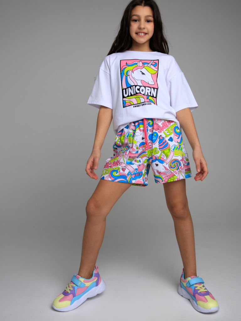 Шорты из качественного эластичного и приятного на ощупь трикотажа джерси. Высокое содержание хлопка 95%. Благодаря наличию 5% эластана в составе ткани изделие держит форму и меньше мнется. Посадка comfort fit - свободный крой. Эластичный пояс со шнурком. Оптимальная посадка, шорты не сползают при движении. Карманы в боковых швах.