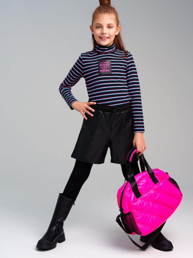 Шорты с кожаными вставками для девочки подростка. Шорты на резинке со шнурком. Модель из капсульной коллекции PREPPY VIBE (ПРЕППИ ВАЙБ). Соберите полный образ в едином стиле!