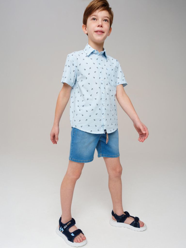 Джинсовые шорты для мальчика подростка. Шорты прямого силуэта на резинке со шнурком. Функциональные карманы.