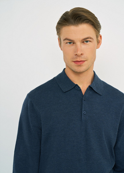 Вязаный джемпер-поло с длинным рукавом, Синий