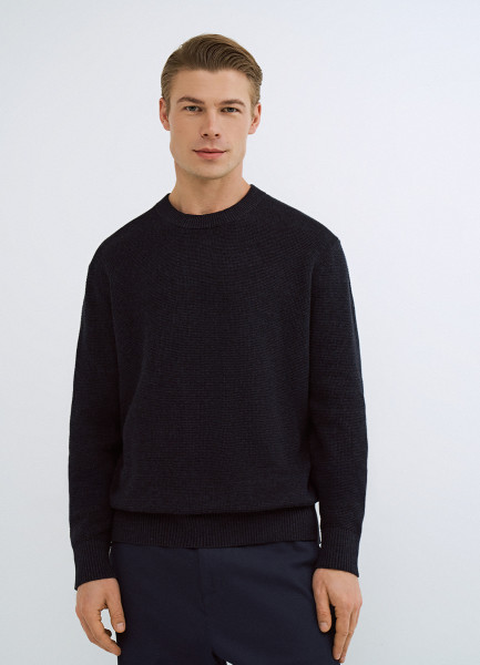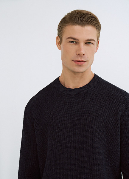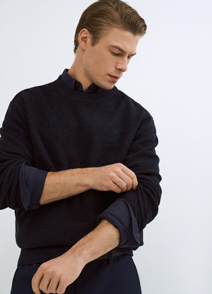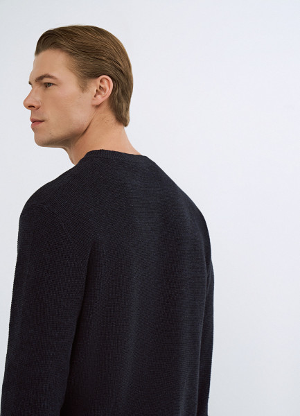 Вязаный джемпер-поло с длинным рукавом, Синий