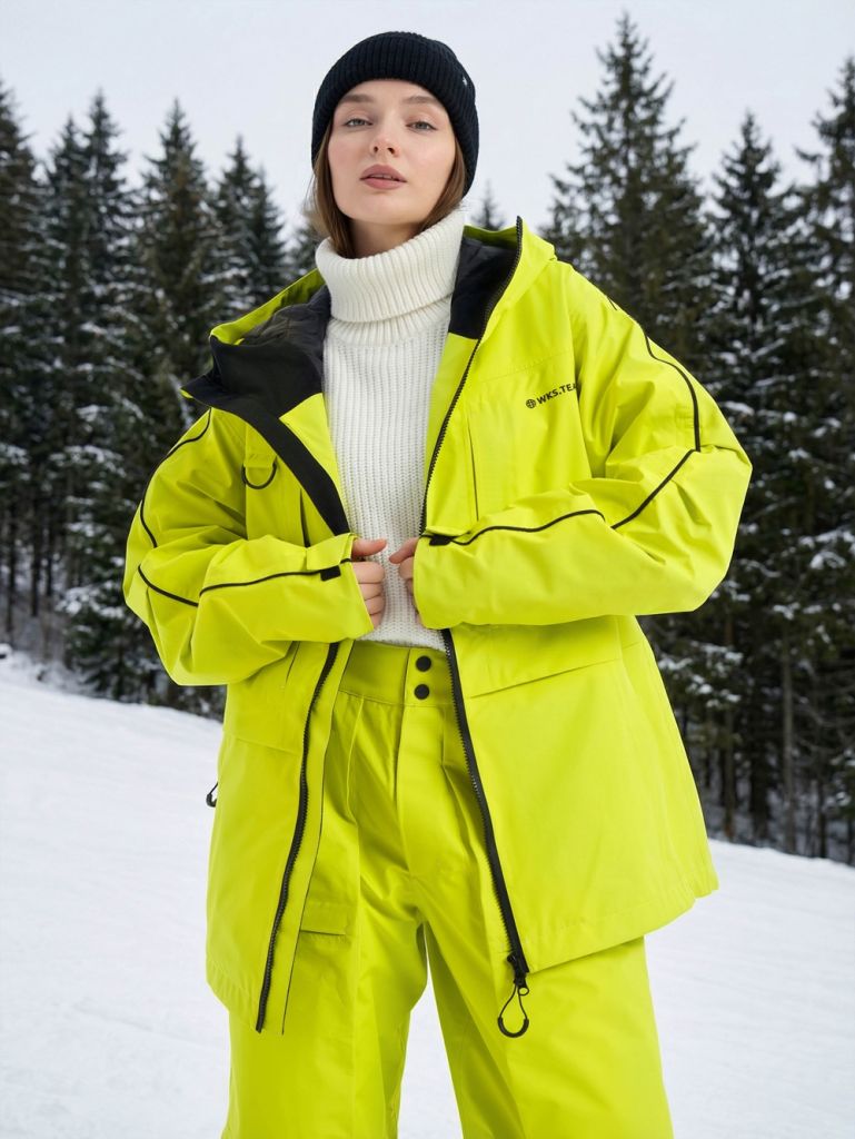 Фишки: унисекс, влагозащита, ветрозащита, снегозащитная юбка, форменный капюшон с утяжкой, oversize-фасон, авторский стиль, карманы внутри, на груди и по бокам, а также отдельный кармашек для ски-пасса.
