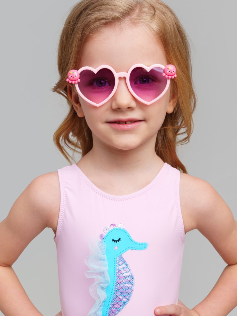 Солнцезащитные очки с фильтром Cat3 детские для девочки. Обхват головы 52-54 см. Ширина оправы - 135 мм, длина дужки -130 мм. С защитой UV400, которая может поглощать или отражать 90% ультрафиолетовых лучей с длиной волны менее 400 нанометров, эффективно блокируя все ультрафиолетовые лучи солнечного света. Очки с розовыми линзами хорошо подходят для условий меняющегося освещения (то свет, то тень). Солнцезащитные очки в форме сердца имеют трендовый дизайн. Два маленьких украшения в виде осьминога на оправе очень милые и привлекают внимание ребенка. Очки транспортируются в картонной коробке. В комплект входит фирменный текстильный чехол из микрофибры, с помощью которого легко ухаживать за изделием.
