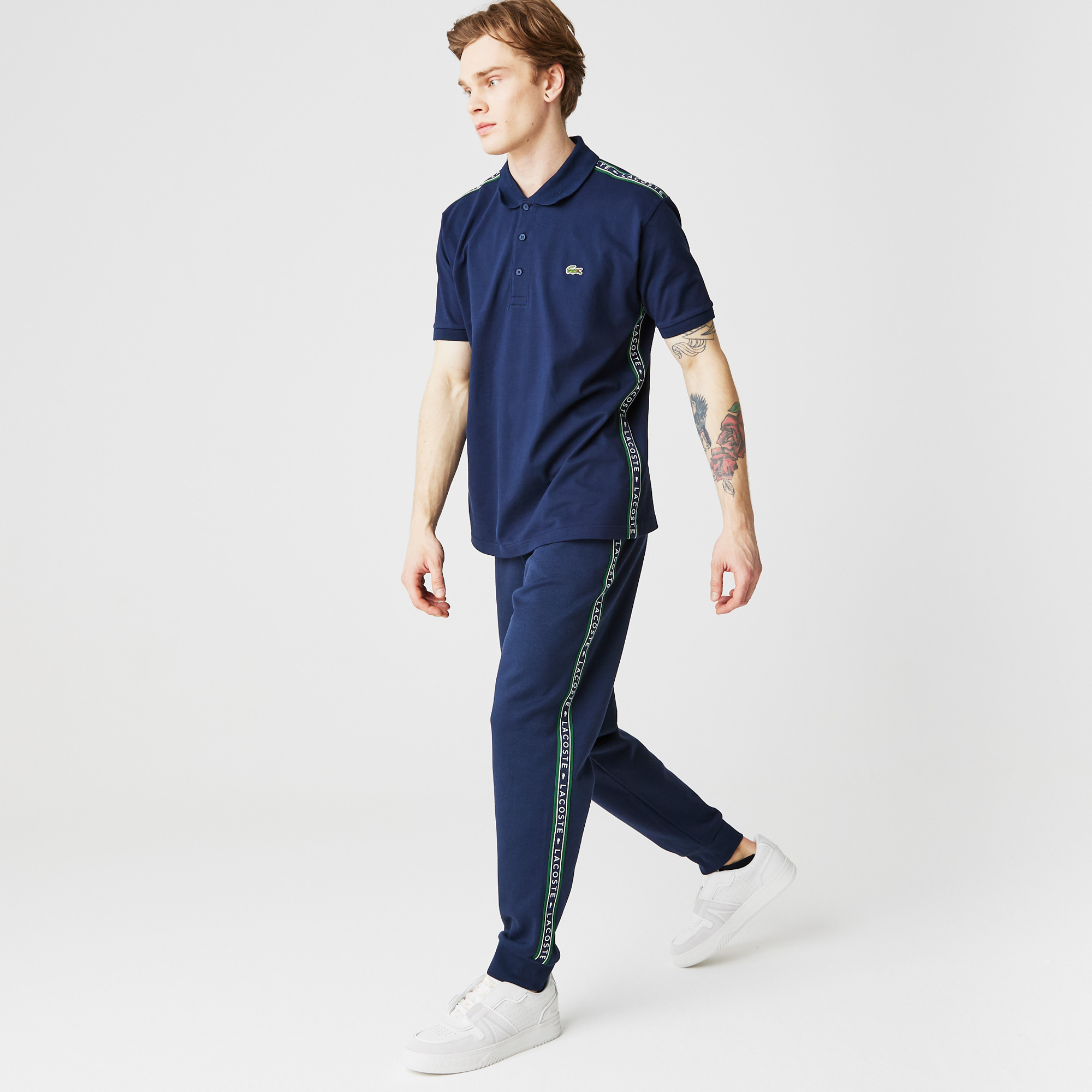 Эластичный пояс с кулиской\Эластичные манжеты\Прорезные карманы по бокам\Лампасы с надписью Lacoste\Логотип в тон изделия\Материал: 66% хлопок 34% полиэстер
