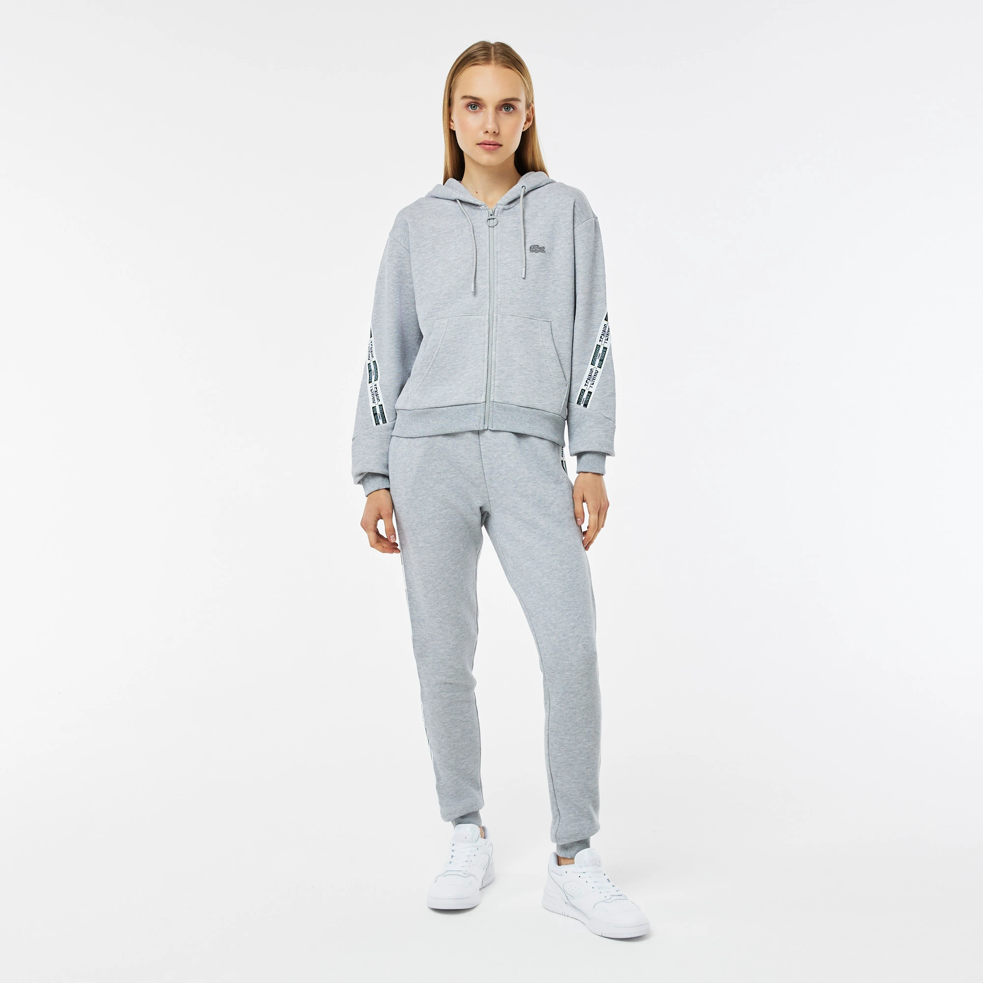 Эластичный шнурок на талии\Контрастные ленты с брендингом по бокам\Прорезные карманы на молнии\Эластичные манжеты\Вышитый логотип в тон изделия\Материал: 100% хлопок