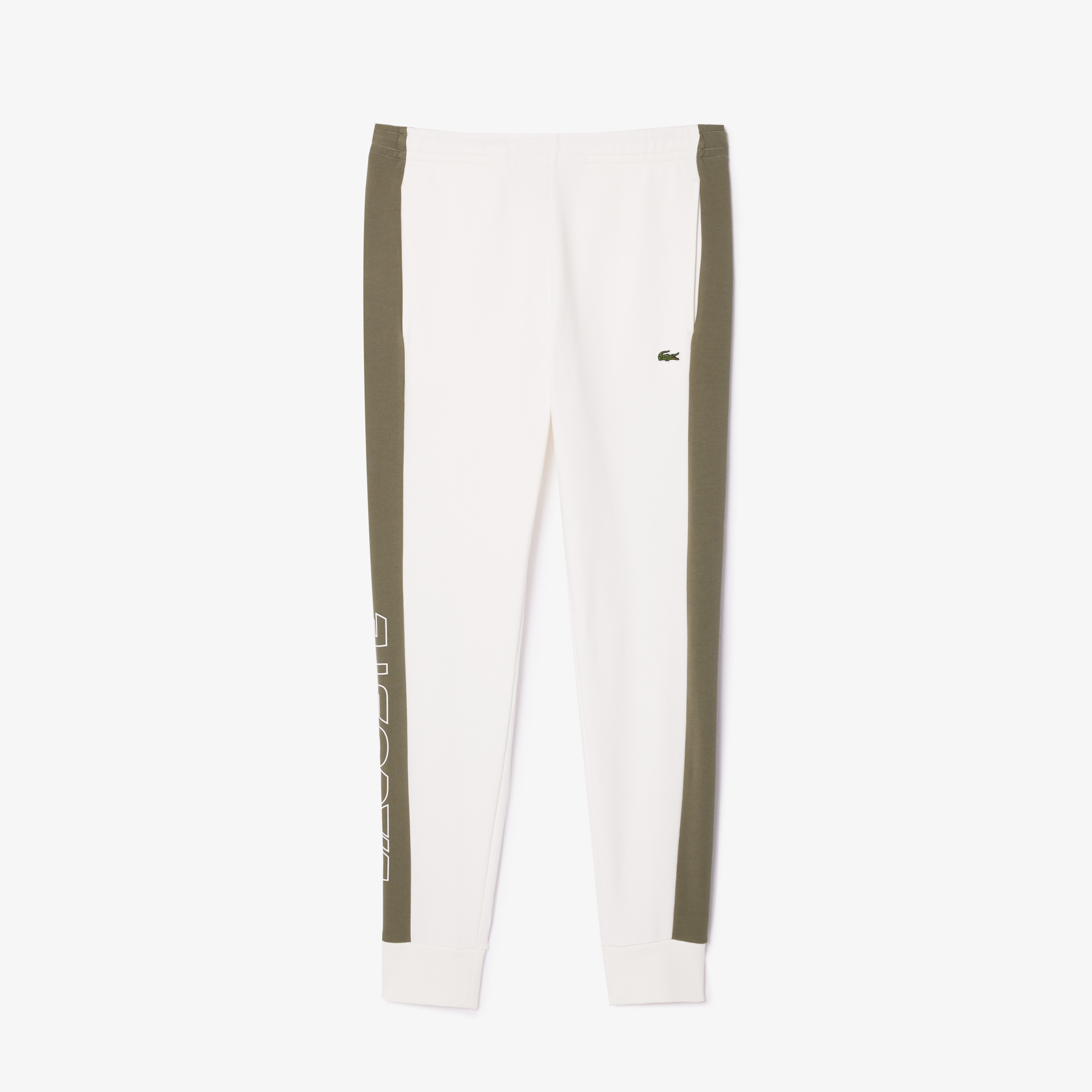 Спортивные брюки в цветную полоску \ Хлопковый флис \ Зауженный крой \ Потайные боковые карманы \ Приталенные манжеты в рубчик на щиколотках \ Вышитый логотип \ Нечесанный флис \ Коническая посадка \ Талия на шнурке \ Карманы по бокам \ Вышитый крок