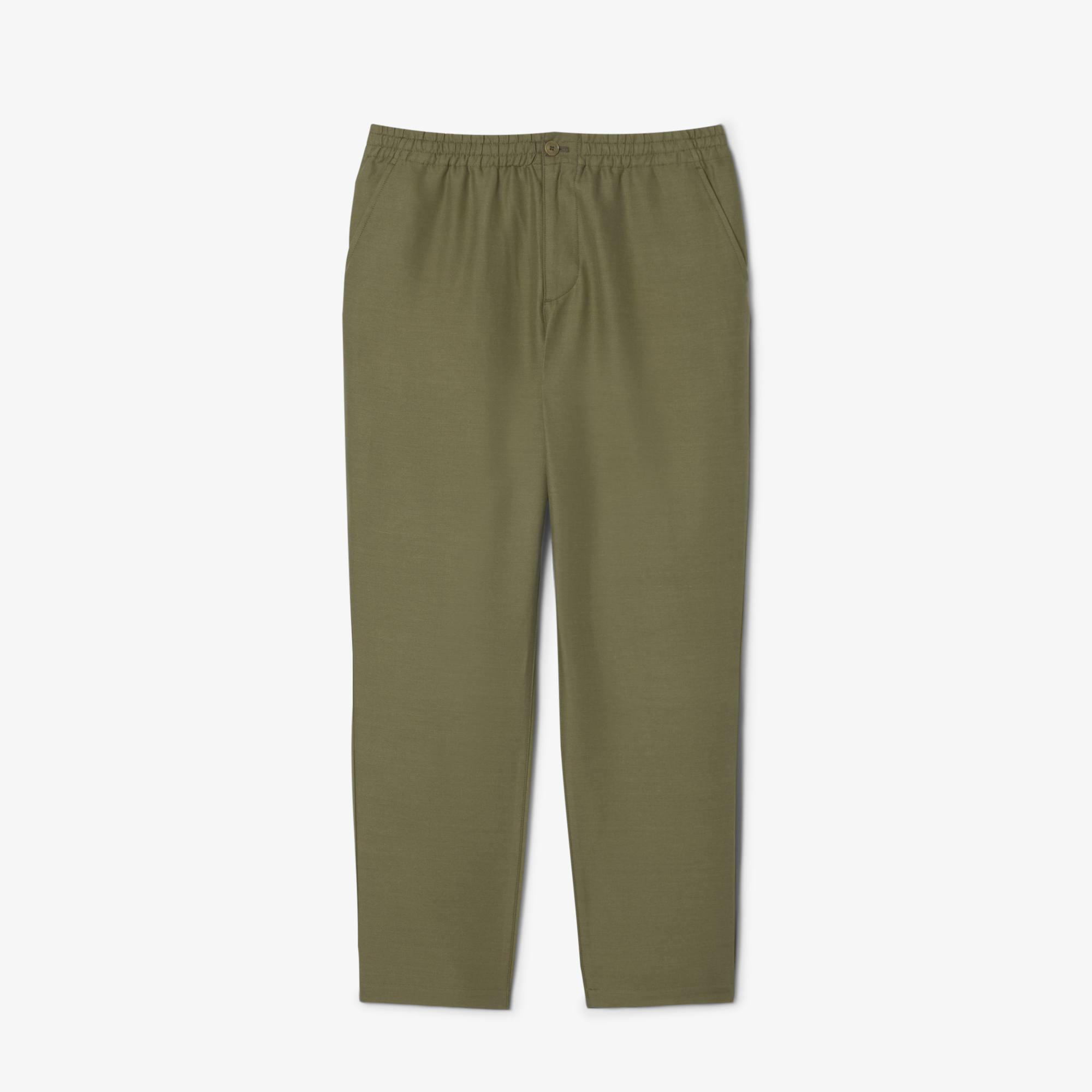 Брюки из льняной саржи Regular Fit \ Саржа из смеси льна \ Regular fit, прямой крой \ Итальянские карманы спереди \ Эластичная талия \ Вышивка логотипана заднем кармане \ Материал: 61% шерсть 31% вискоза 8% полиэстер
