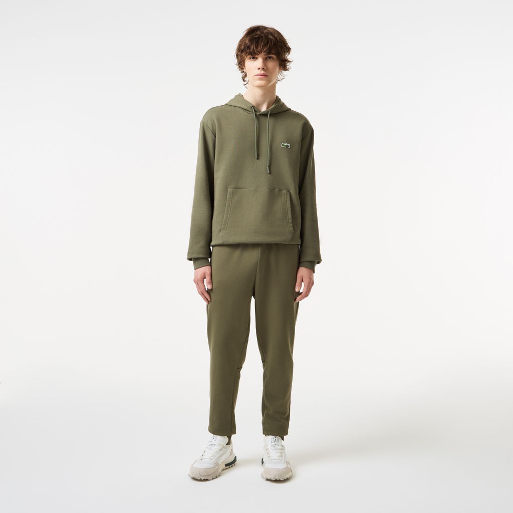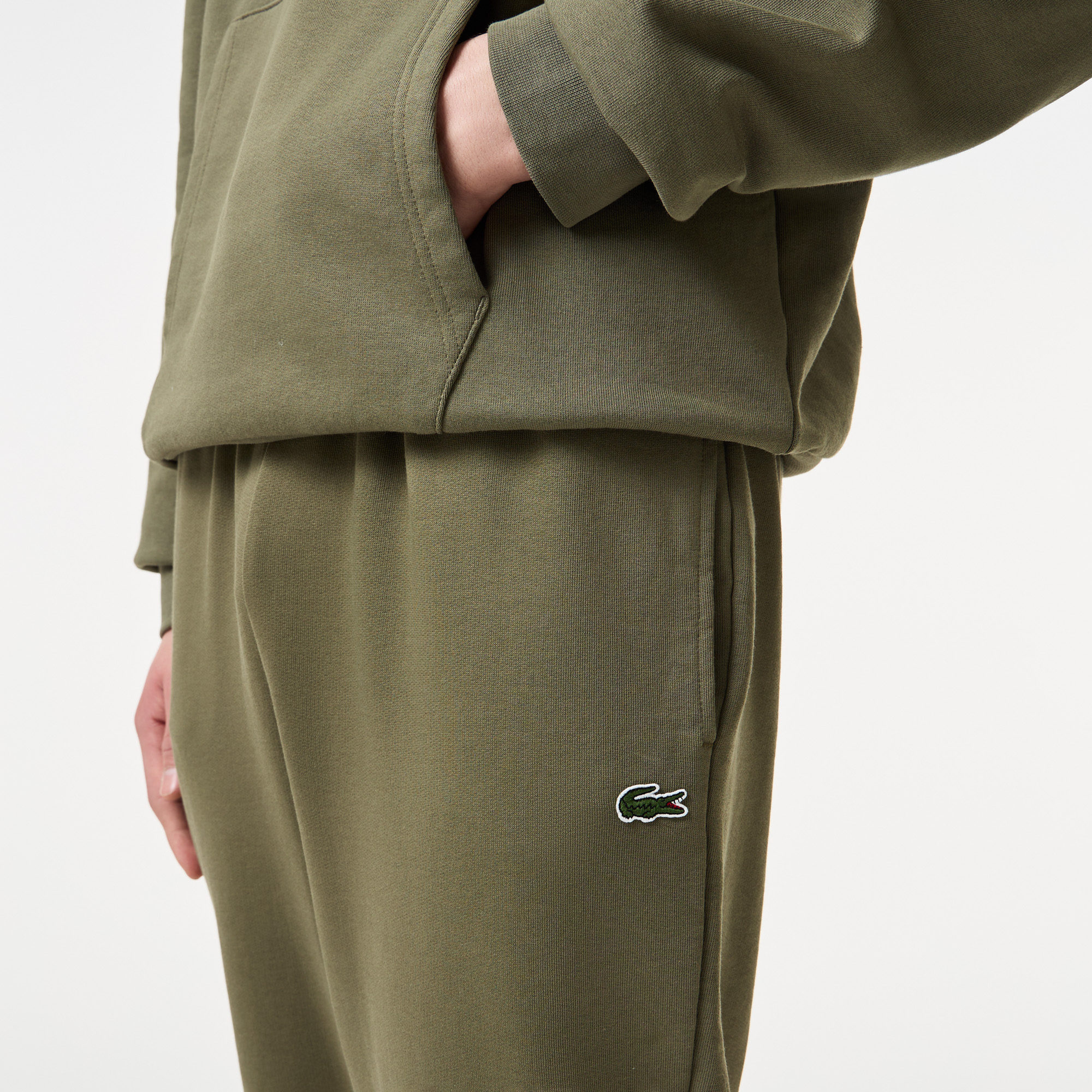 Пояс с потайной кулиской\Прорезные карманы\Эластичные манжеты\Вышитый логотип\Материал: 79% органический хлопок 21% переработанный полиэстер\Рост модели 190 см, размер одежды 4-M