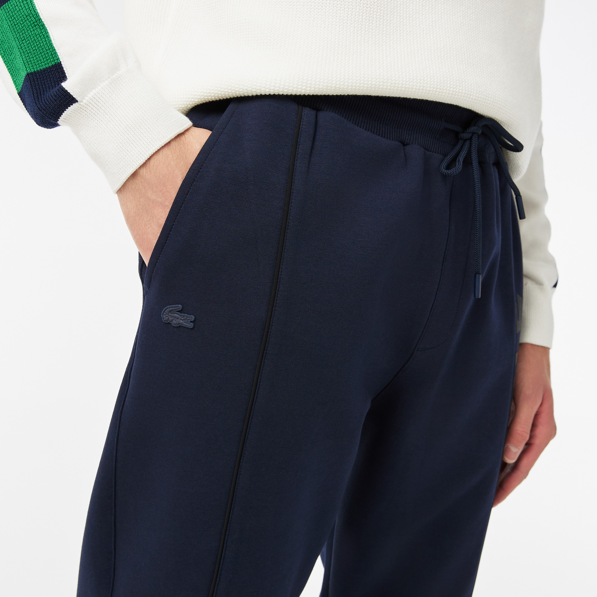 Эластичный шнурок на талии;\Прорезные карманы;\Надпись "Lacoste" на штанине;\Эластичные манжеты;\Вышитый логотип в тон изделия\Материал: 78% хлопок 17% полиэстер 5% эластан
