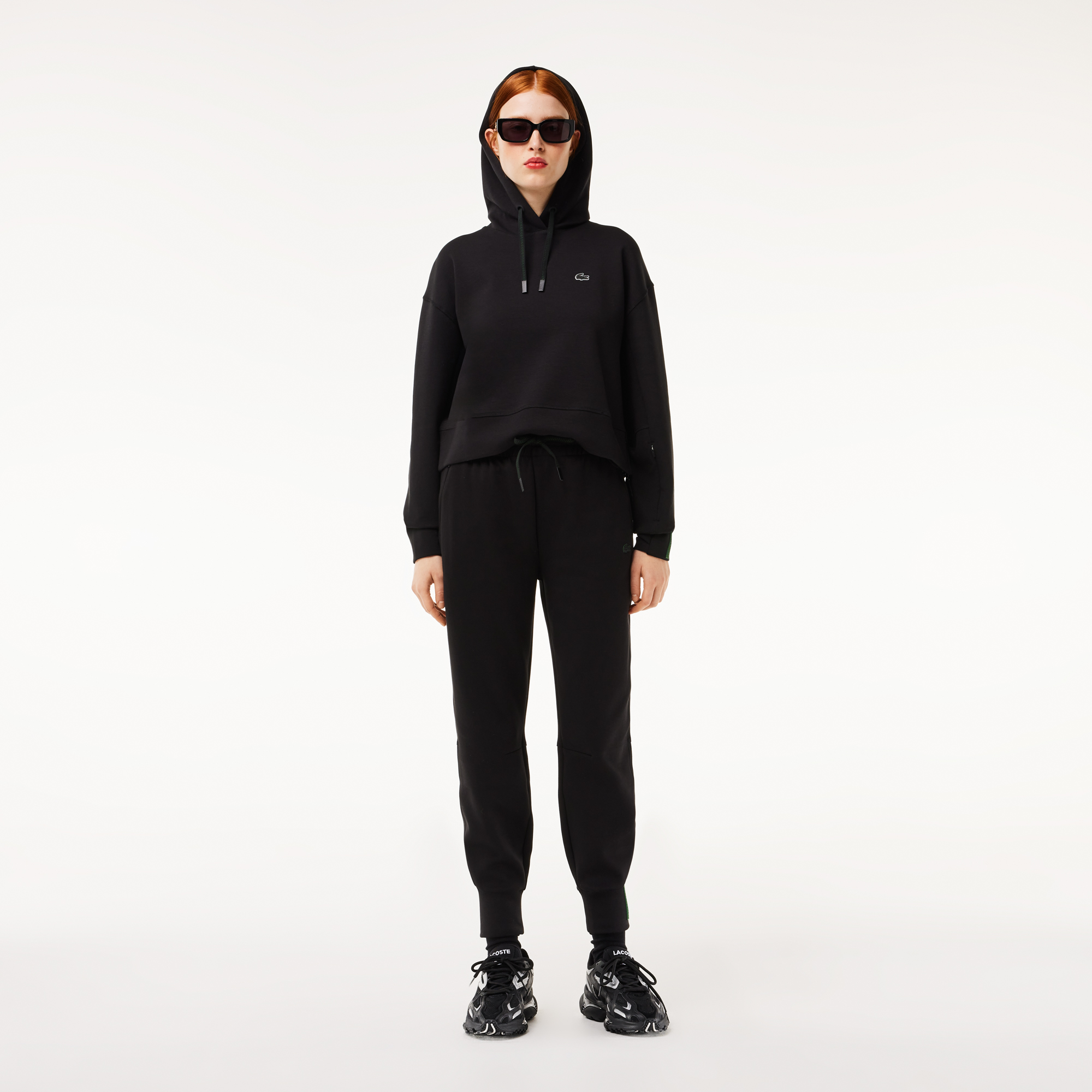 Хлопковые спортивные брюки \ Трикотаж из органического хлопка и переработанного полиэстера \ Зауженный крой \ Петля для ключей в переднем правом кармане \ С географическими координатами исторической фабрики и штаб-квартиры Lacoste \ Силиконовый крокодил \