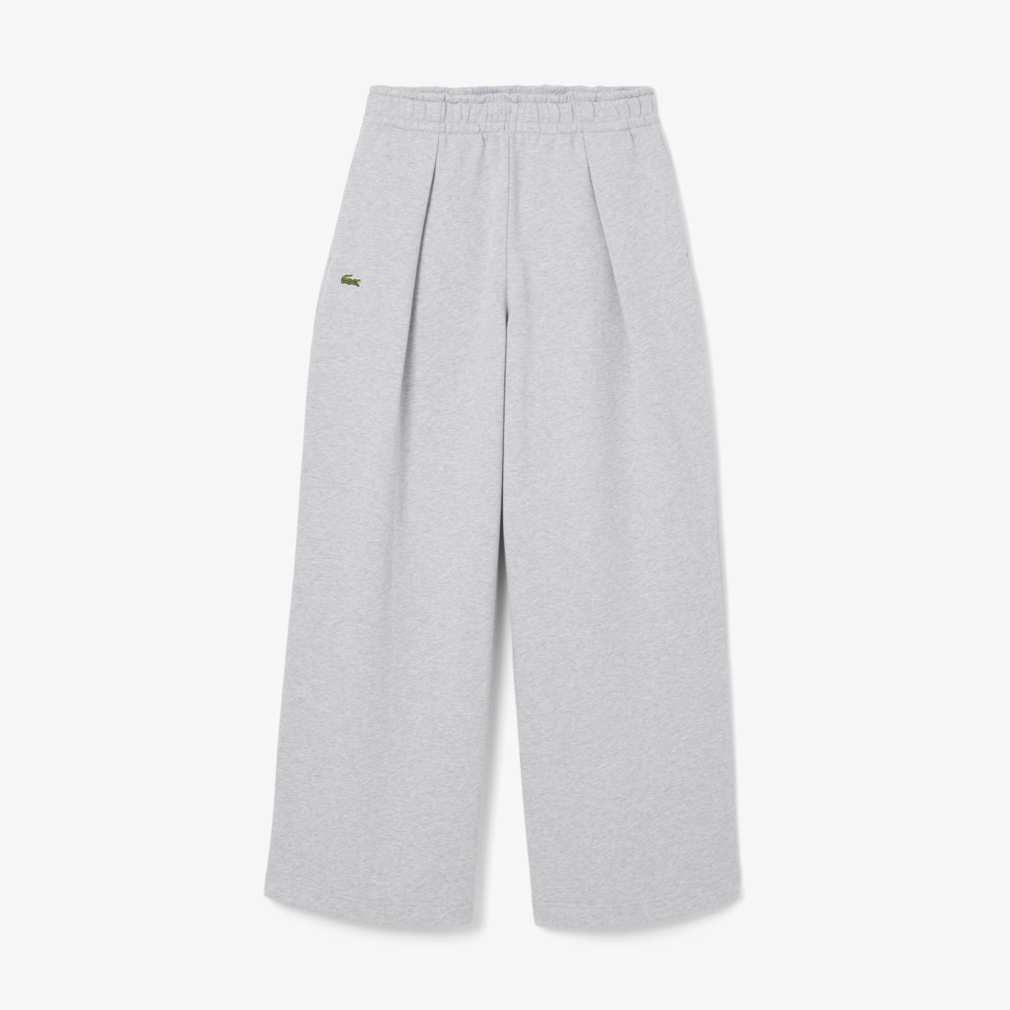 Широкие плиссированные брюки из крокодиловой кожи \ Флис из органического хлопка \ Широкие штанины свободного покроя \ Боковые карманы \ Пояс на завязках \ Пришитый вышитый крокодил под карманом \ Материал: 100% органический хлопок