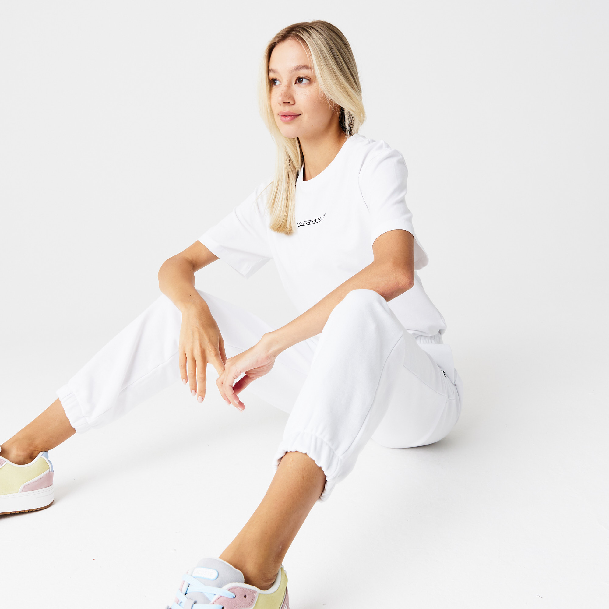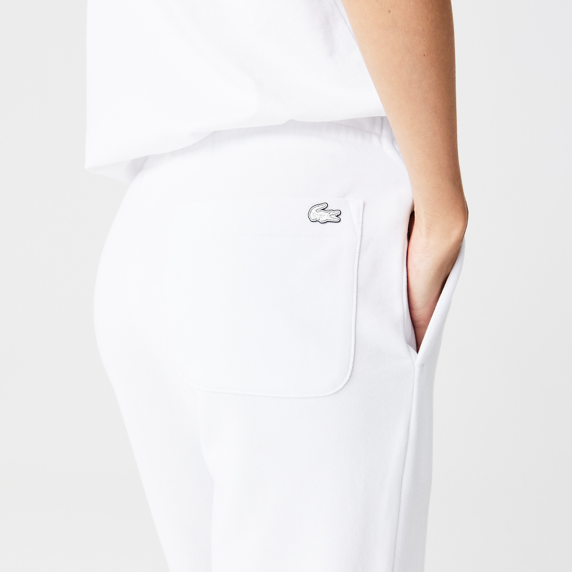 Женские джоггеры Lacoste из фланели без кисточек \ Регулируемая талия \ Боковые карманы \ Фирменный знак спереди \ Вышитая силиконовое лого \ Хлопковая фланель без кисточек \ Регулируемая талия;\Боковые карманы\Материал: 83% хлопок 17% полиэстер