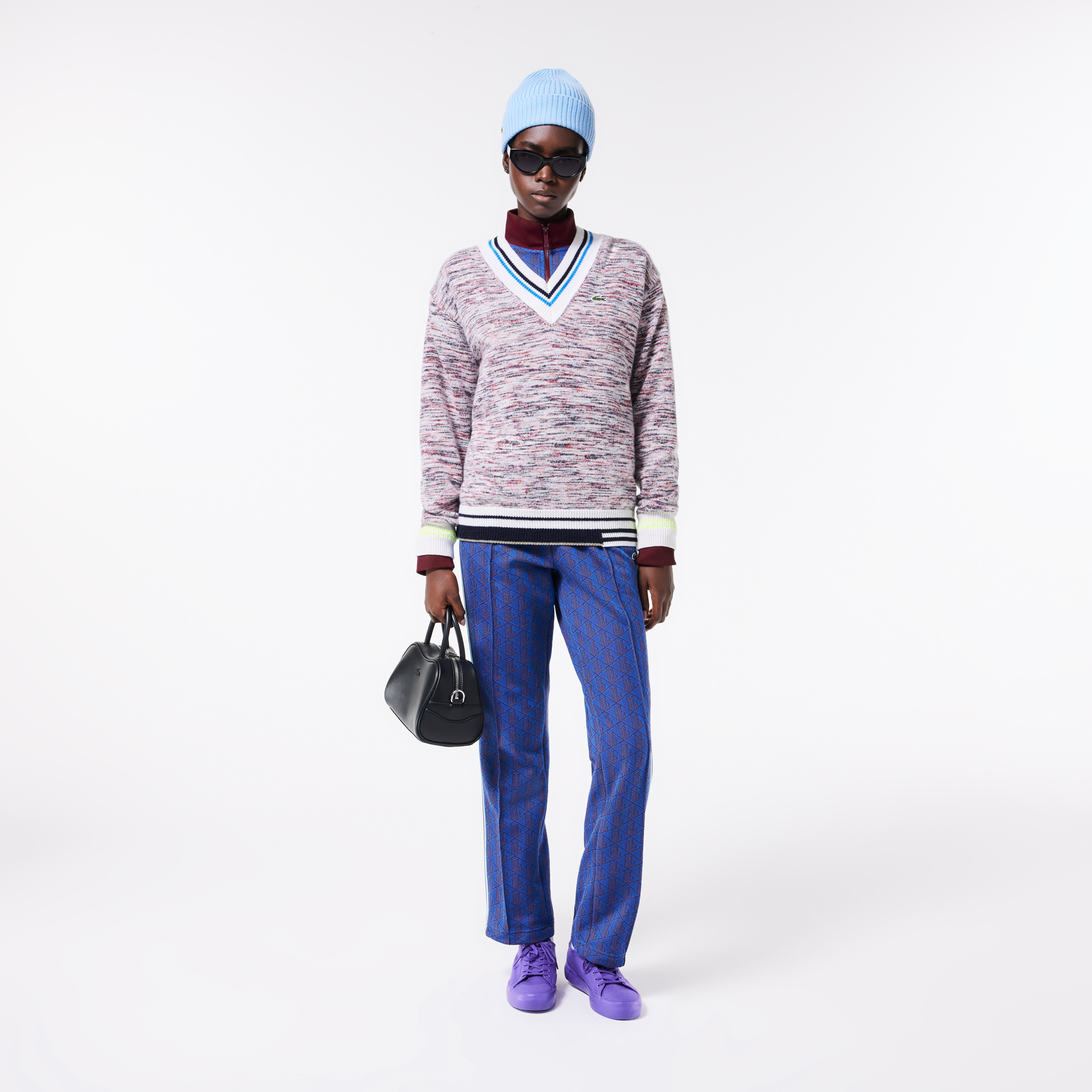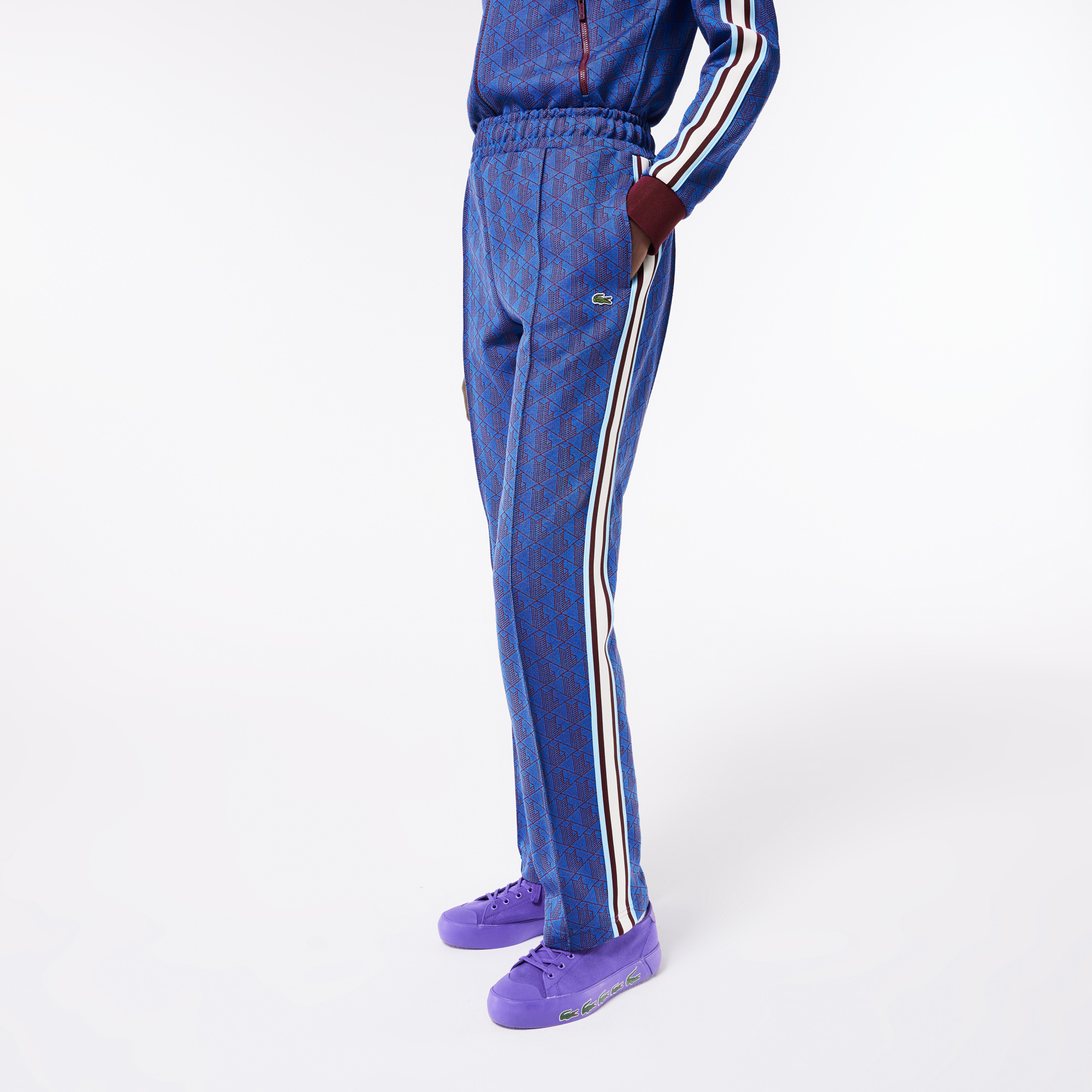 Спортивные брюки Paris Monogram \ Жаккардовая ткань \ Расклешенный крой \ Контрастные полосы по бокам \ Боковые карманы \ Вышитый логотип под карманом \ Жаккардовая ткань\Контрастные полосатые полосы по бокам\Прорезные карманы\Культовый принт с монограмм