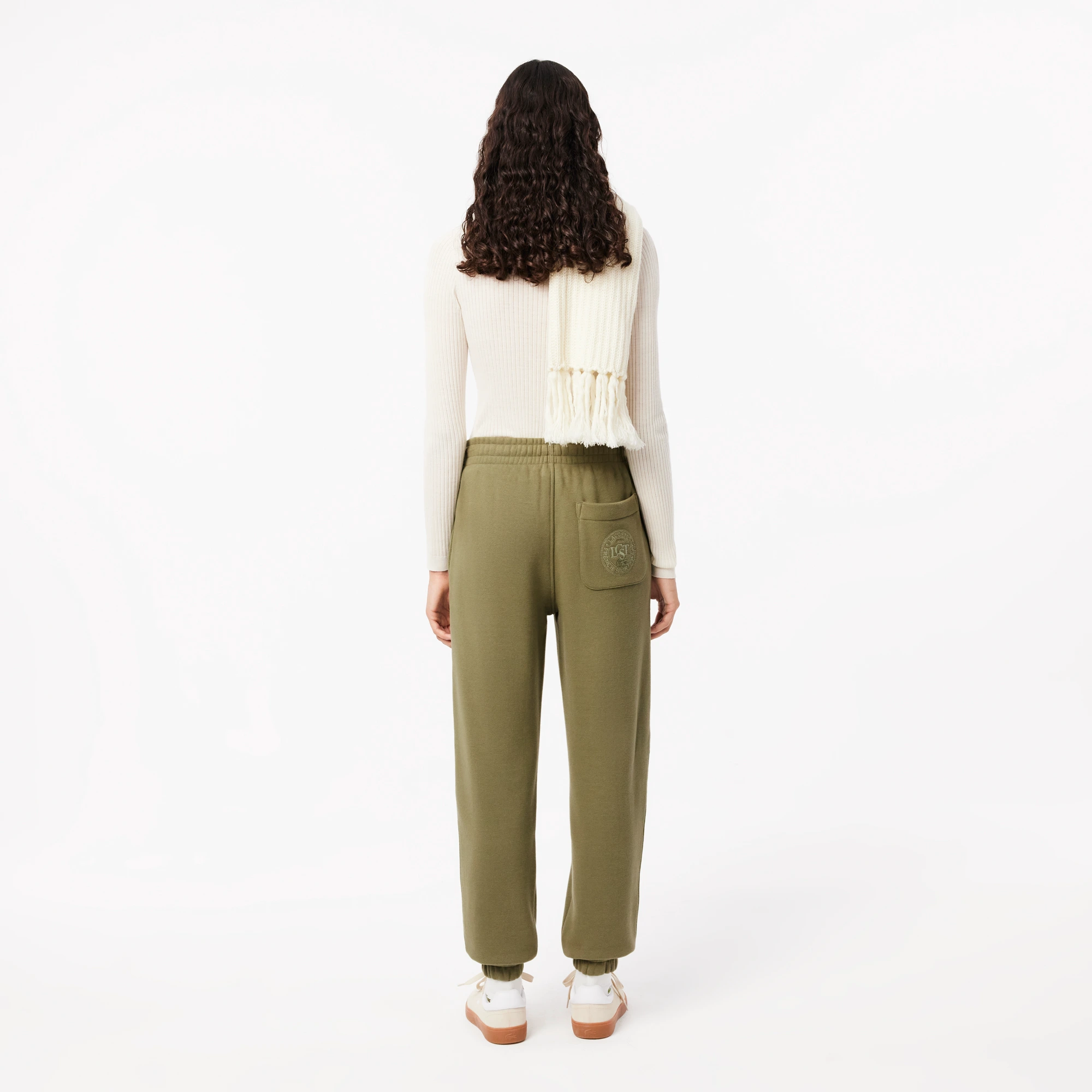 Спортивные брюки с вышивкой \ Флис из органического хлопка без кисточек \ Талия с завязками \ Карманы в боковых швах \ Зауженные лодыжки \ Вышитый логотип на спине \ Материал: 100% органический хлопок