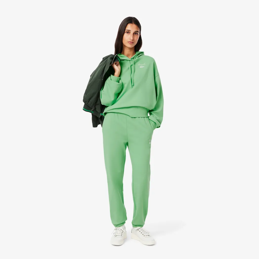 Спортивные брюки из флиса с логотипом \ Хлопковый флис без кисточек \ Прямой крой, зауженные лодыжки \ Завязки на талии в тон \ Карманы в боковых швах \ Вышитый логотип на спине \ Материал: 83% хлопок 17% полиэстер