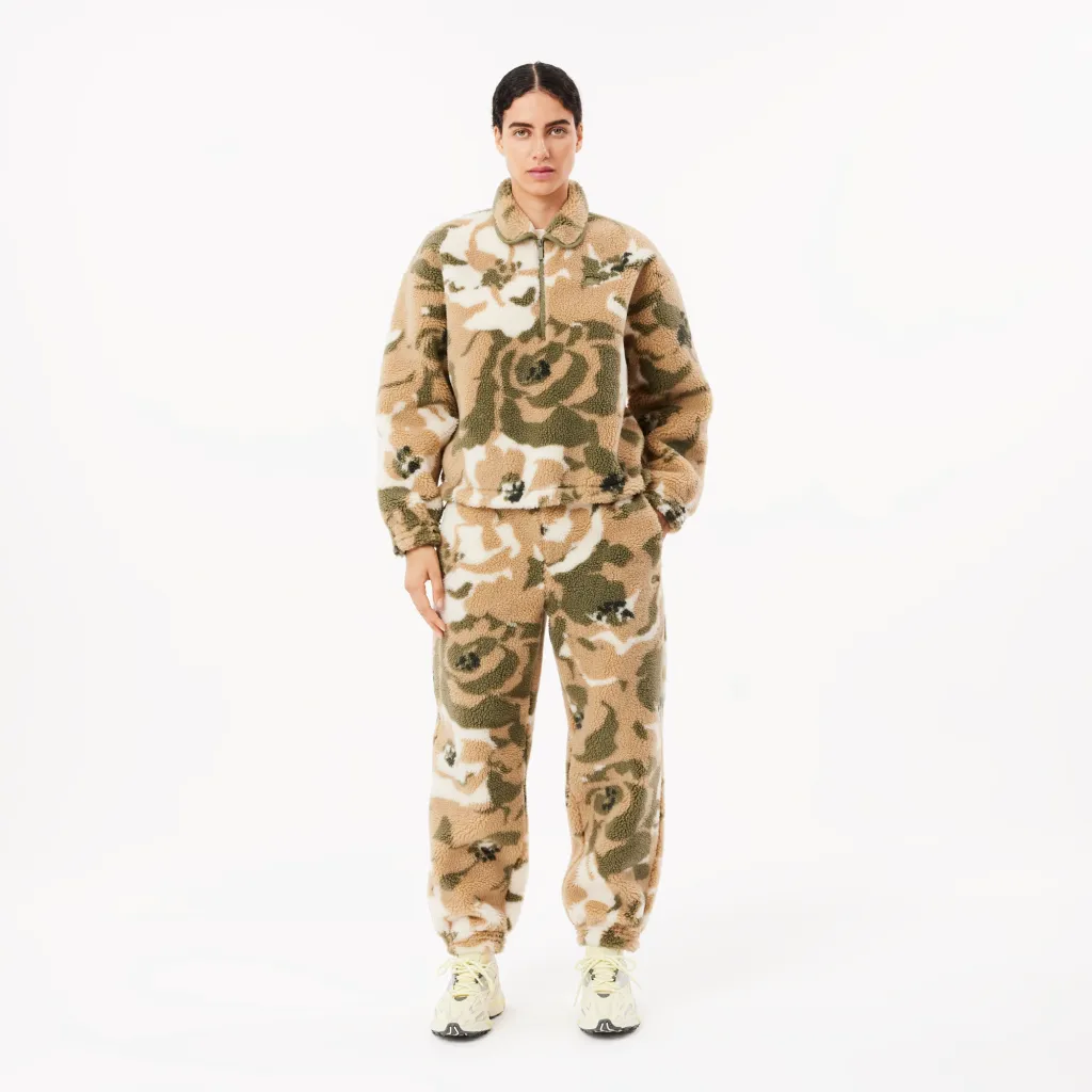 Спортивные брюки из жаккардового флиса \ Теплая флисовая ткань \ Эластичная талия и лодыжки \ Жаккард в цветочек \ Логотип крокодила в тон под передним карманом \ Если вы колеблетесь между двумя размерами, мы рекомендуем вам выбрать размер меньше вашего о