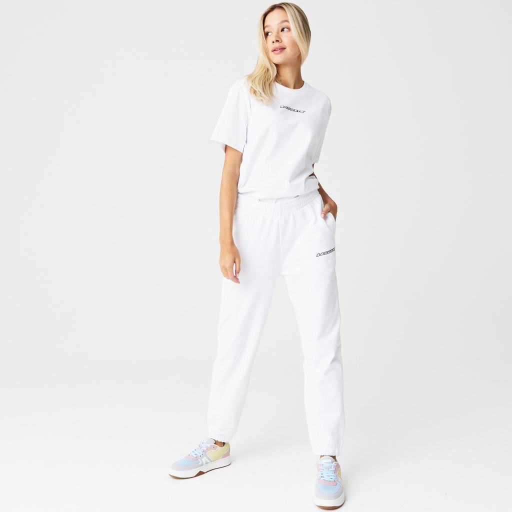 Женские джоггеры Lacoste из фланели без кисточек \ Регулируемая талия \ Боковые карманы \ Фирменный знак спереди \ Вышитая силиконовое лого \ Хлопковая фланель без кисточек \ Регулируемая талия;\Боковые карманы\Материал: 83% хлопок 17% полиэстер