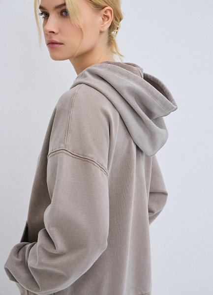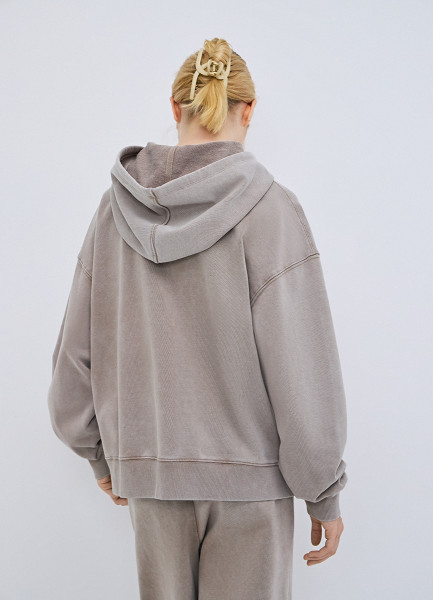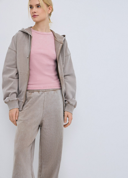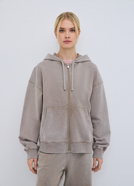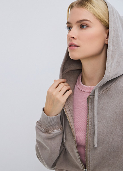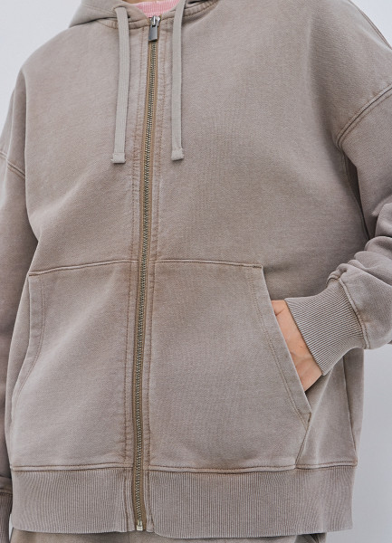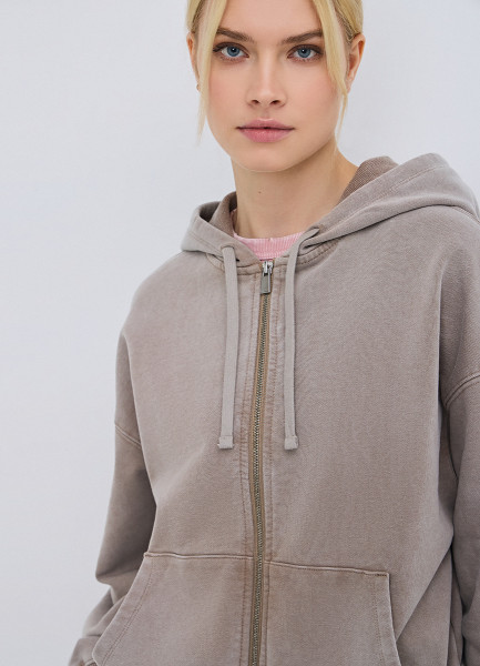 Толстовка на молнии с эффектом стирки, Бежевый