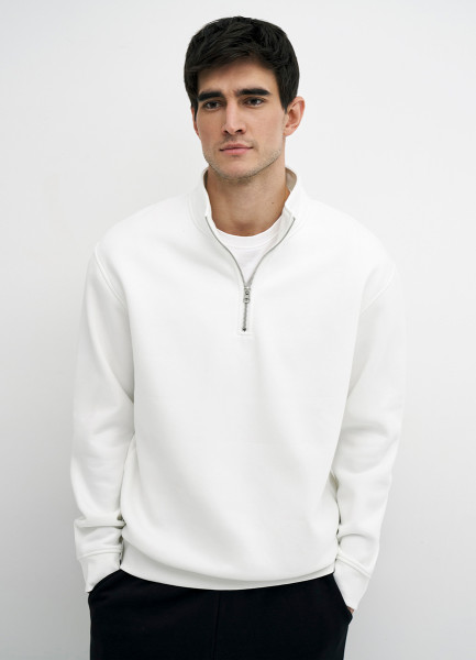 Толстовка с воротником-стойкой на молнии, Белый