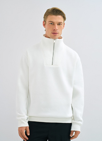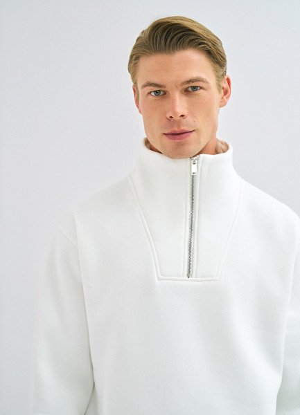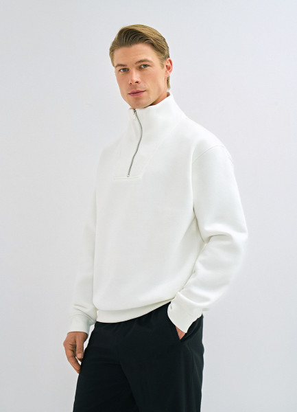 Толстовка с воротником-стойкой на молнии, Белый
