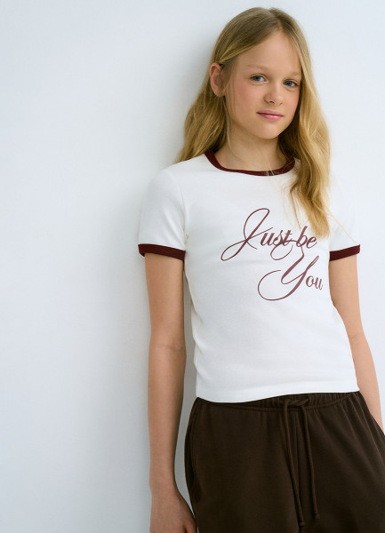 Футболка в рубчик для девочек, Бежевый